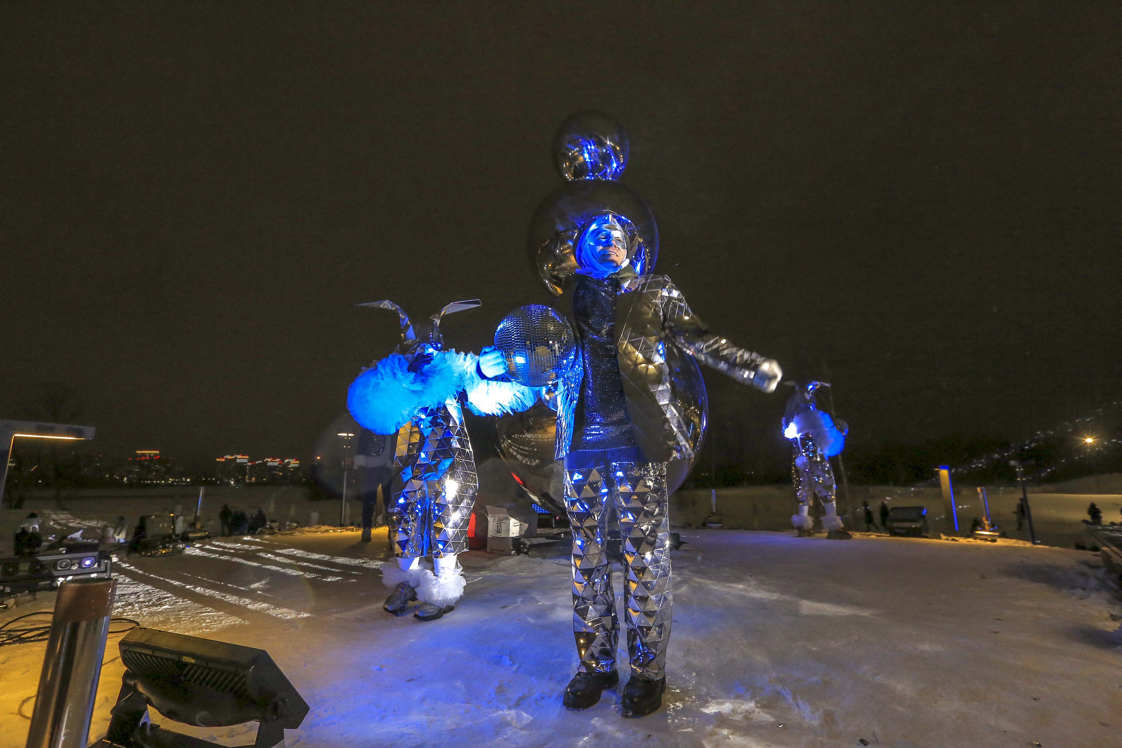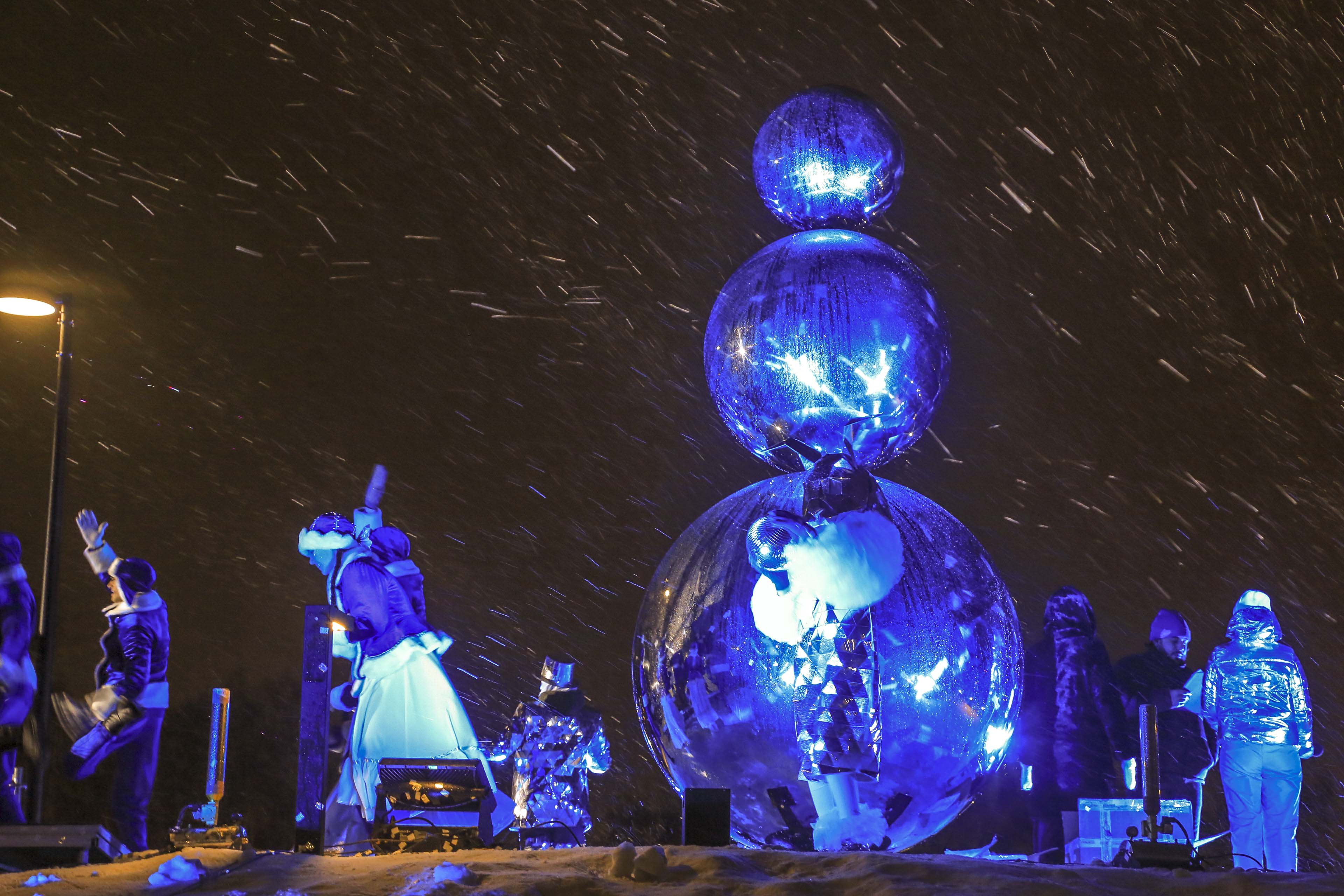 Сегодня, 8 января, на территории парка также прошёл Фестиваль снежных баб, в котором могли принять участие все желающие. В результате пространство заполонили пёстрые снеговики, есть и один большой — зеркальный.