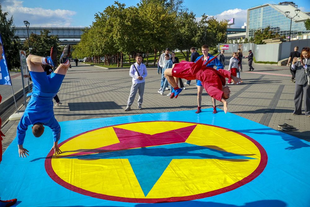 В спортивной зоне «Сильнейшая нация мира» новосибирцам показали выступления по самбо и карате, а также турнир по шахматам.