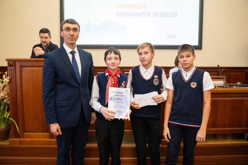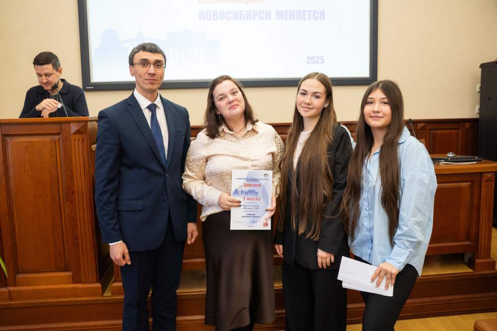 Победителей второго этапа городского конкурса школьных пресс-центров наградили в мэрии в четверг, 27 ноября. Работы юнкоров оценивали в номинации «Новосибирск меняется».