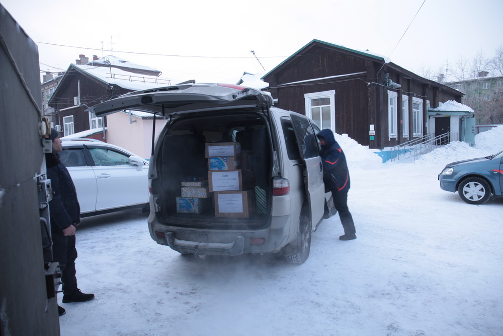 Замороженные пироги, письма, тёплые вещи от жителей города — первую партию со склада отгрузили сегодня, 12 января.