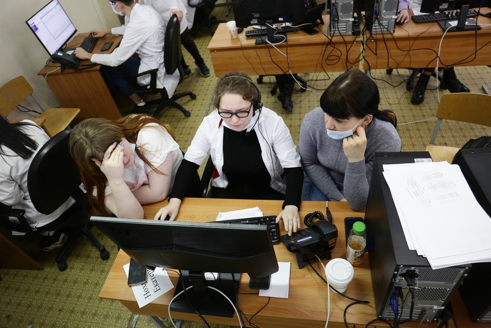 700 звонков в день принимает каждый оператор единой регистратуры. В последние дни вызовов стало втрое больше. Втрое больше теперь и сотрудников. Каждую смену на работу выходят больше 200 человек. Развернули дополнительные колл-центры. Для помощи привлекают и студентов.