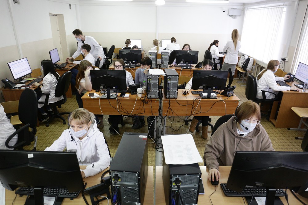 «Если заболевает оператор — у нас есть резерв. В очень короткий срок мы можем взять людей из текущего учебного процесса, скажем, с этажей, находящихся выше, и очень быстро возместить заболевших операторов», — поясняет директор новосибирского медицинского колледжа Алексей Пилипенко.
