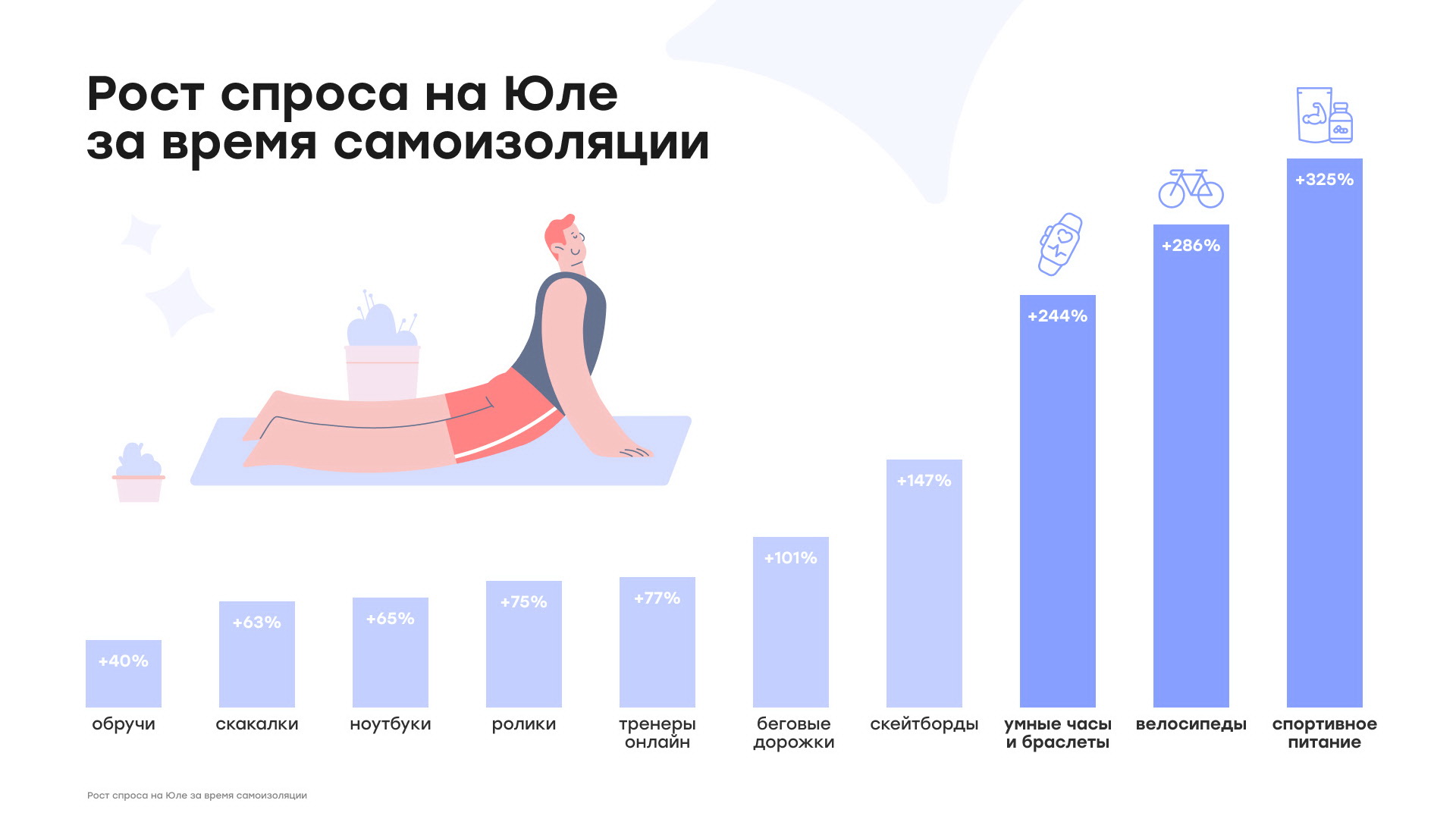 «С марта по июнь большинство из нас провели дома из-за коронавируса. Мы подсчитали — на какие товары, услуги и категории спрос вырос сильнее всего за эти 77 дней», — рассказали аналитики «Юлы».