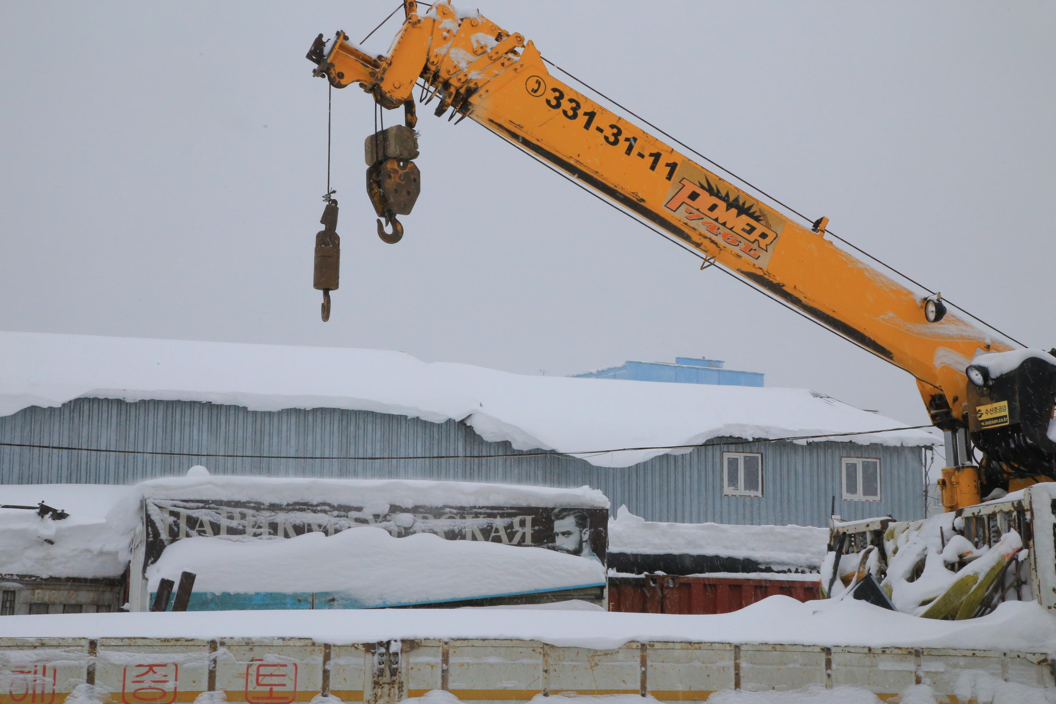 Грузовой контейнер подцепляют, как рыбу на крючок. Улов на этой площадке у Гусинобродского шоссе — богатый: таких объектов — полторы сотни, а ещё около 50 киосков и павильонов. Стоят они на этом участке незаконно. Сюда контейнеры и киоски привезли, когда рядом работал вещевой рынок и старые правила допускали такое использование городской земли. Это — со слов человека, который называет себя собственником контейнеров.