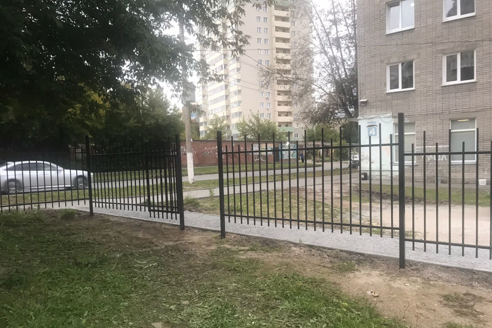 В рамках благоустройства установили ограждение, освещение, лавочку, три вазона для цветов. Также высадили кустарники и молодые ели. Для жильцов устроили праздник, завершившийся огненным шоу. Детей порадовали катанием на лошади и сахарной ватой.