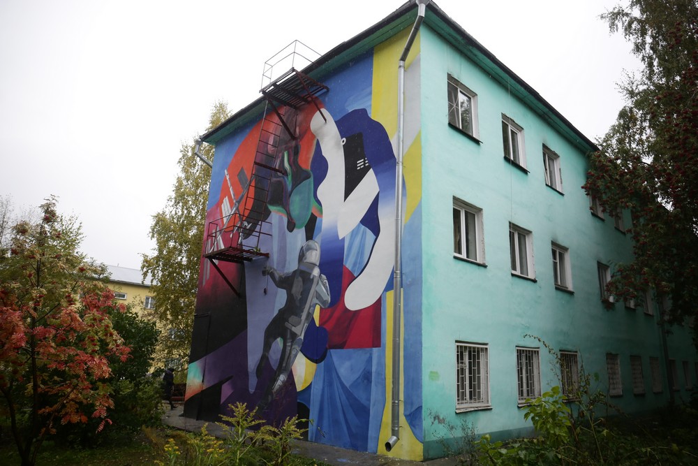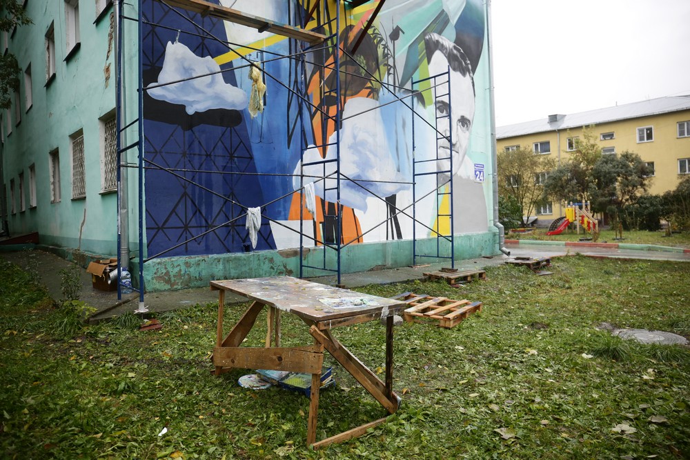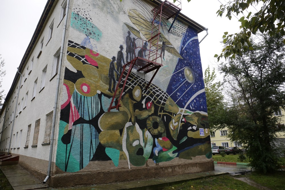 — Это, наверное, и было основной задачей — вынести стрит-арт из зоны городского центра в более отдалённые, спальные районы. Потому что даже я, являясь активной молодой жительницей города, не так часто бываю в центре. А более взрослое поколение в центр приезжает, но... Повседневное настроение создаётся здесь. Поэтому хотелось украсить и создать такую атмосферу именно в дальних районах.