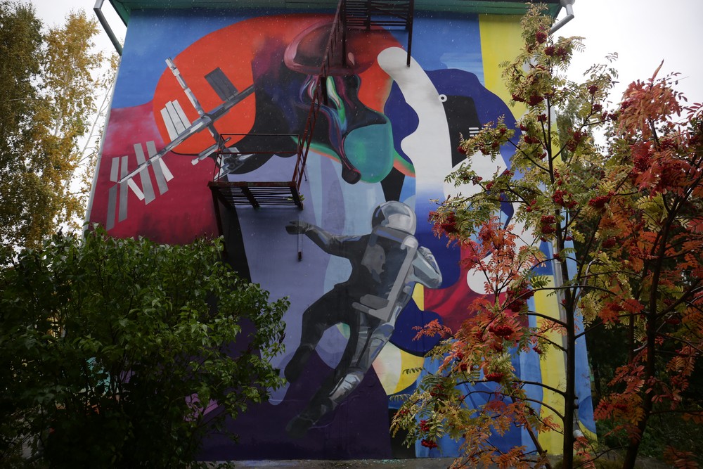 Соцгородок между Монументом Славы и садом Кирова преобразился. Там на торцевых стенах трёхэтажек появились масштабные муралы. Художники изобразили портреты Гагарина и Королёва, абстракции на тему космоса. Это — результат стрит-арт-фестиваля «Глоток космического воздуха». «Новосибирские новости» прогулялись среди граффити с художницей Натальей Перевозчиковой и увидели, как современное искусство вписалось в консервативную застройку.
