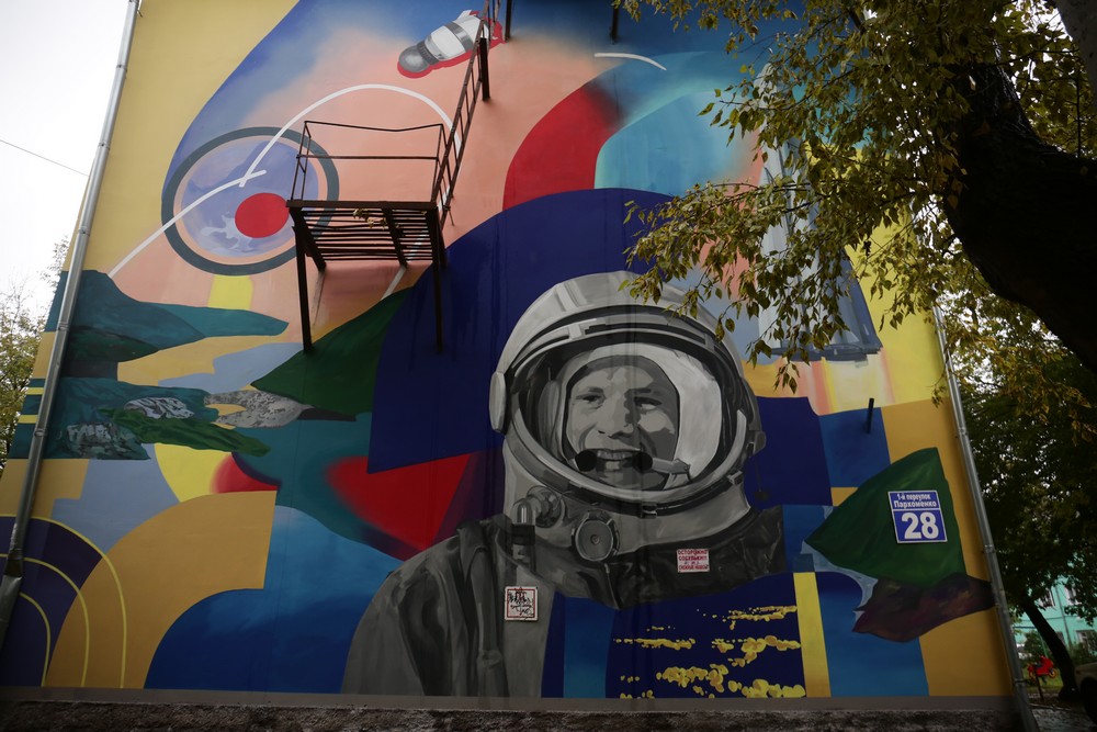 Женский взгляд на подвиг Гагарина и Королёва воплотили в граффити