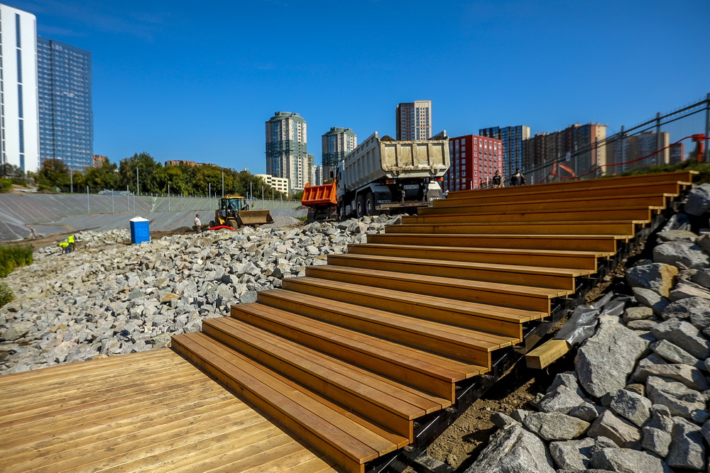 К разработке проект благоустройства береговой зоны застройщик привлекал китайское бюро Turenscape. Концепция предполагает сохранение естественного рельефа и зонирование берега на функциональные площадки — тихую для комфортного обитания животных и птиц, и активную для отдыха жителей будущего высотного квартала.