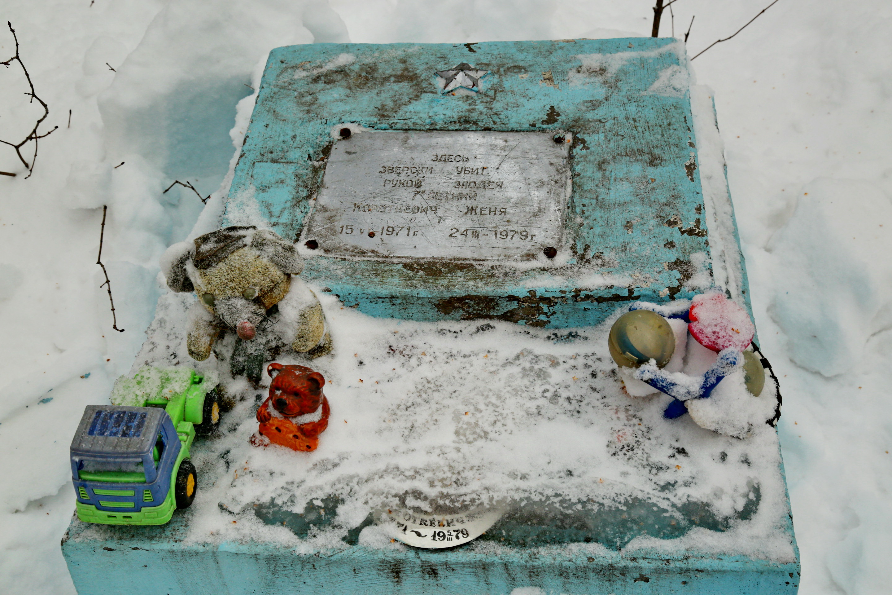 В Калининском районе Новосибирска рядом с парком Сосновый бор есть очень печальная достопримечательность. Это небольшой памятник с табличкой. Он стоит на месте, где в 1979 году нашли тело семилетнего Жени Короткевича. Мальчик жил в частном доме, буквально в сотне метров отсюда. Все годы, сколько стоит мемориал, к нему несут цветы и детские игрушки.