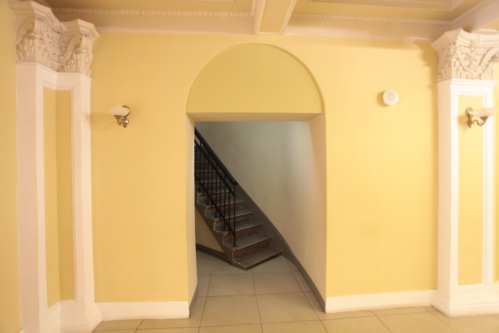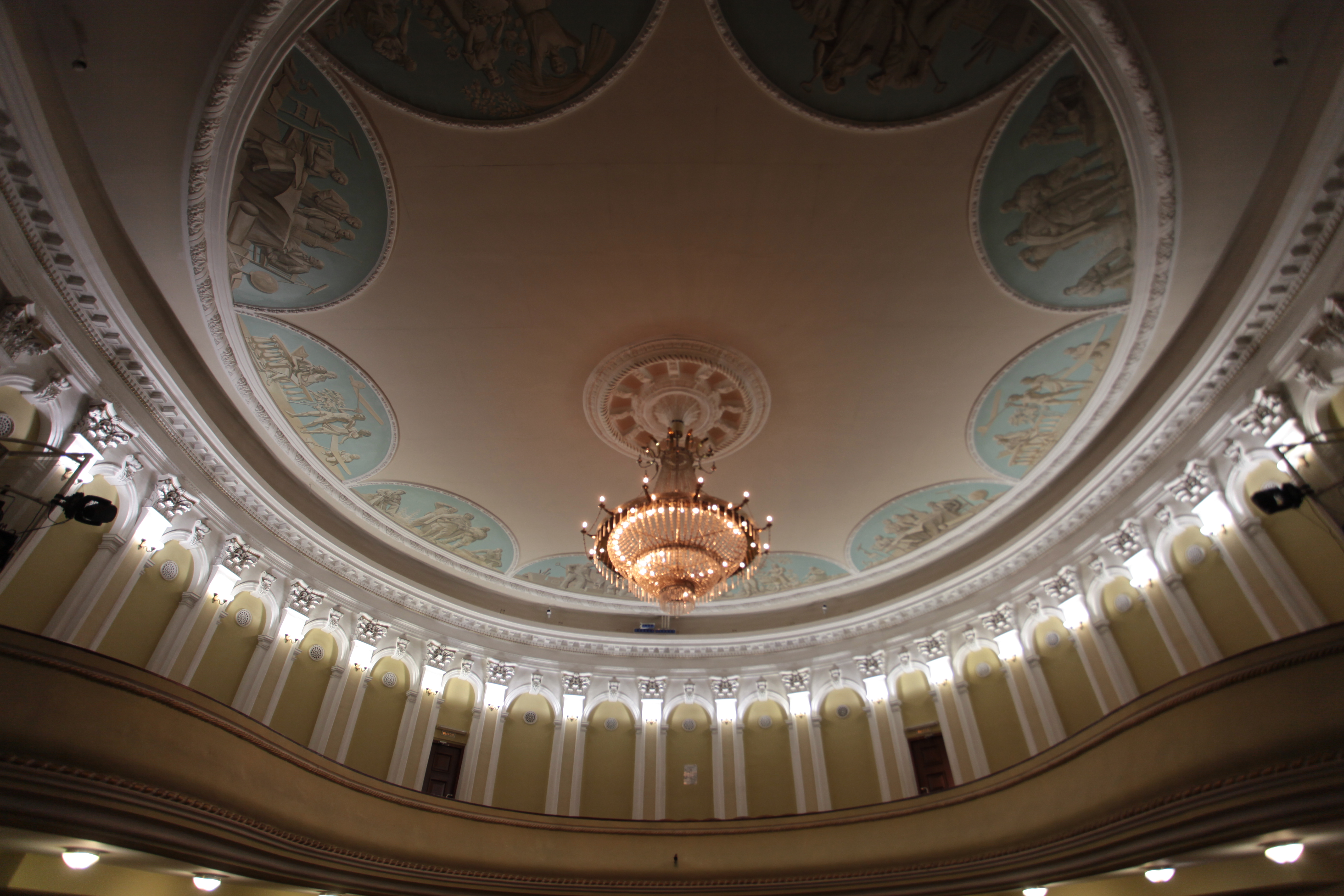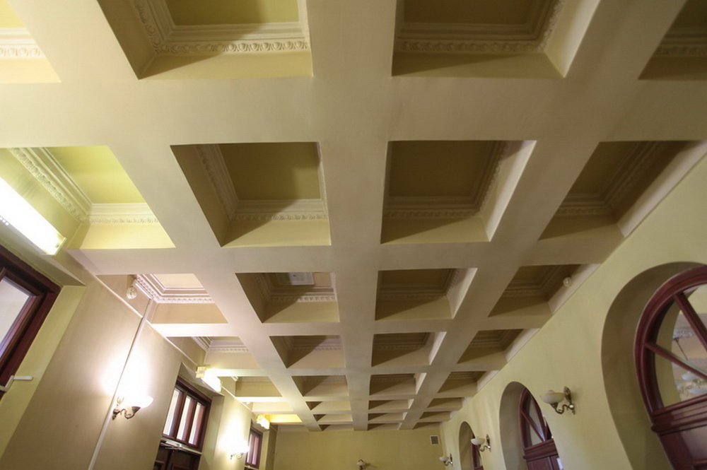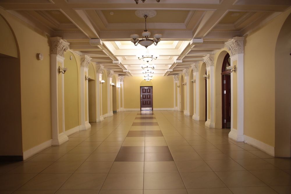В других помещениях ДК тоже можно увидеть сохранившуюся красоту: потолки с кессонами и лепниной, розетки и карнизы, колонны и пилястры.