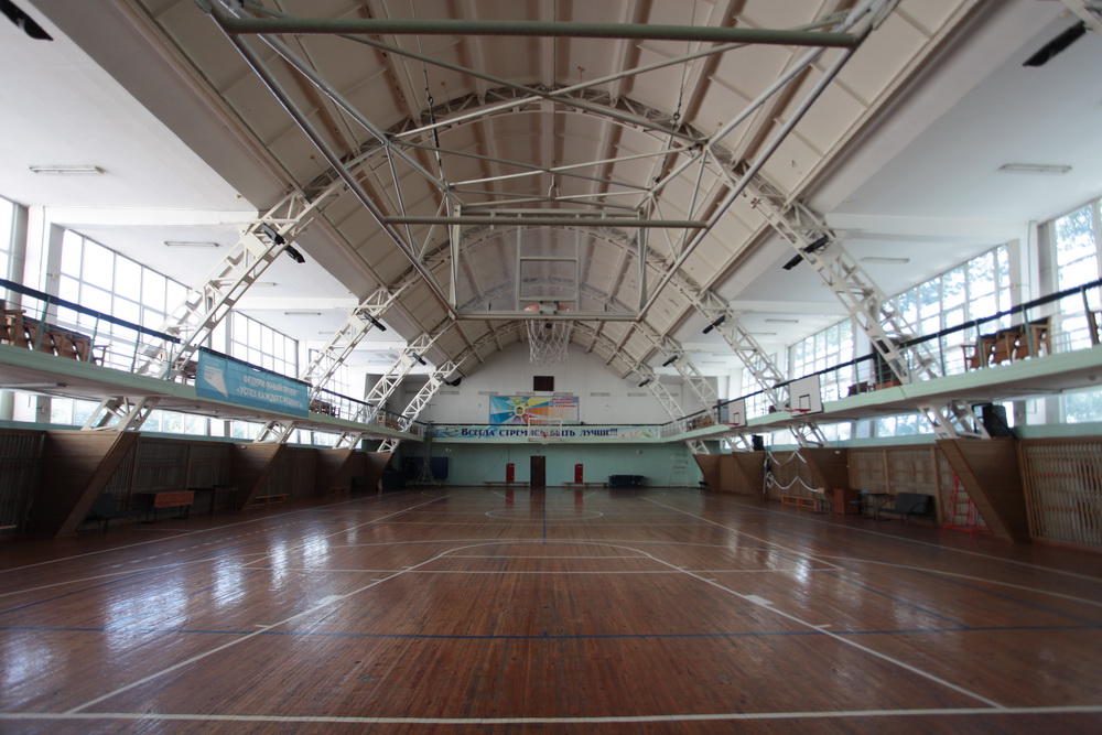 Большой зал пристроили к историческому зданию ДК в 1970-х годах. Дети там занимаются всевозможными видами спорта.