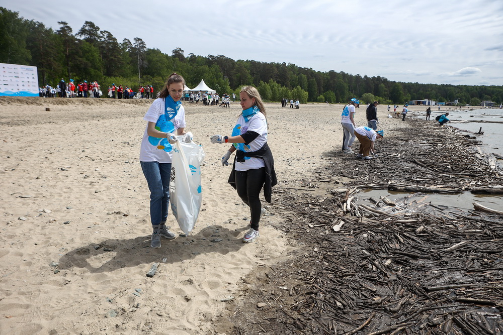 Блогеры, телеведущая и сотни новосибирцев сегодня убирали мусор на берегу Обского моря. Так они отметили День эколога.
